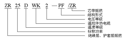 ZR25DWK3-PF 即:阻燃低溫屏蔽防護(hù)型,10℃時(shí)每米輸出功率為25W,工作電壓為380V,具有阻燃、防護(hù)性能。