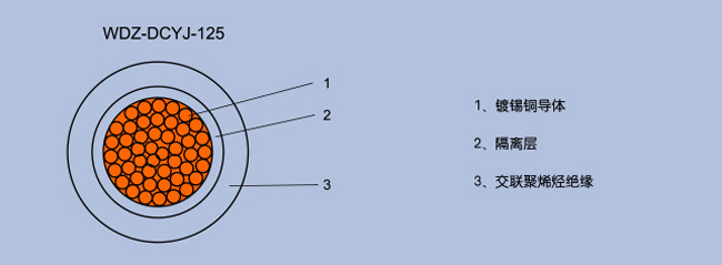1 | WDZ-DCYJ-125 | 500V、750V、1kV、1.5kV、3kV | 銅芯耐熱125℃交聯聚烯烴絕緣無鹵低煙阻燃機車車輛用電纜 |